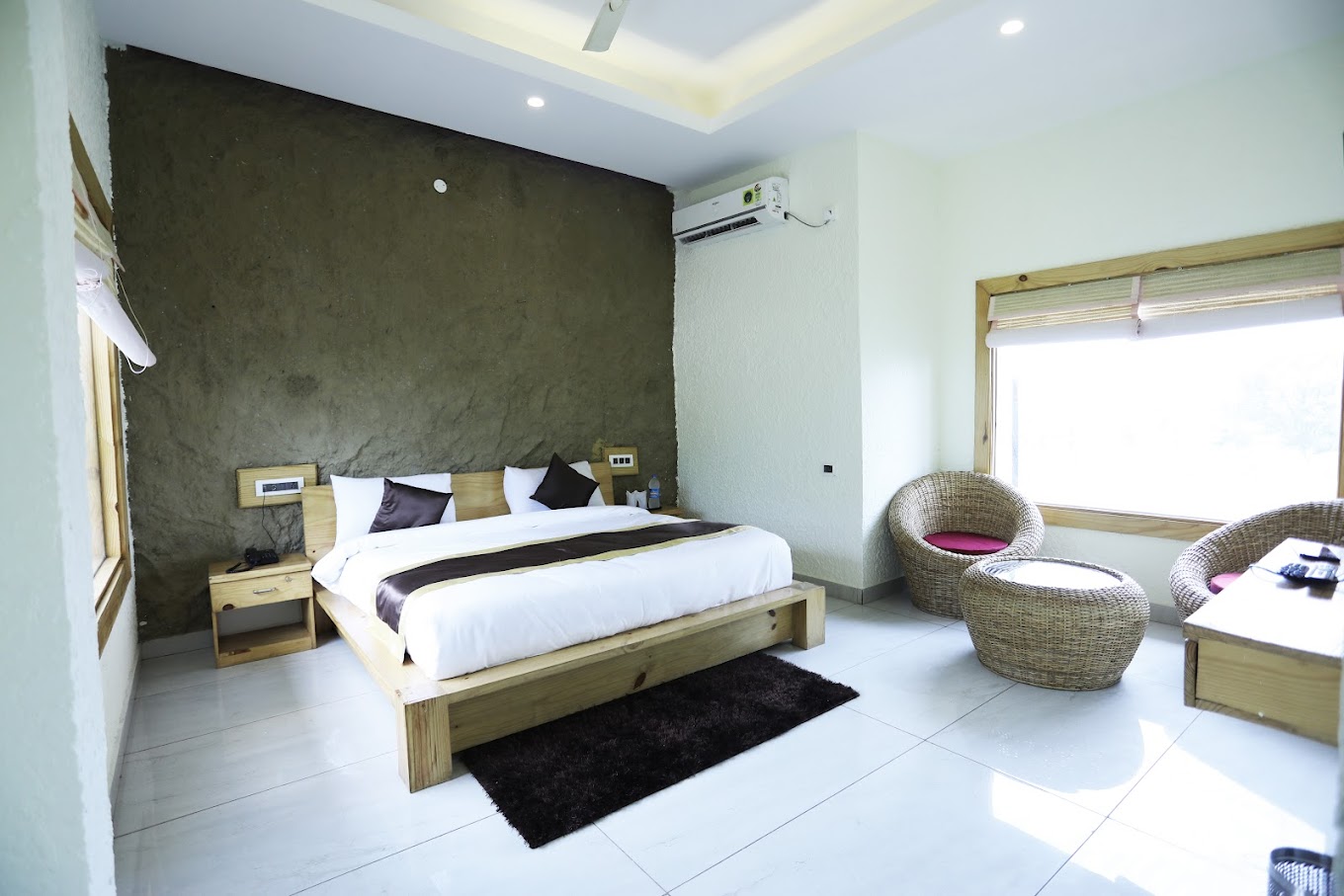 Corbett Nirvana Resort is a serene retreat nestled in lush greenery, offering stunning views of the surrounding mountain ranges. With elegant furnishings and top-notch amenities, it promises a peaceful stay. Designed to blend seamlessly with nature, the resort caters to wildlife enthusiasts and those seeking a contemporary escape. Enjoy unforgettable experiences with activities like jungle safaris, hiking, horse riding, and wildlife photography.